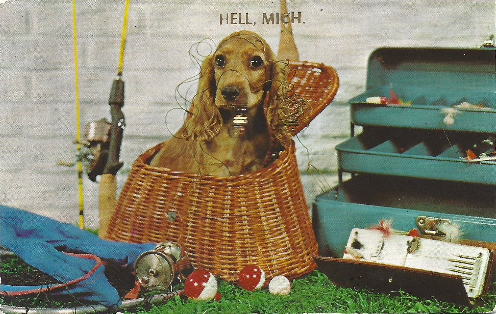 Sometimes the sender (in this case, Michael) writes such a great message that it merits reproduction in full: “I can’t tell if this was a personal card or a mass production. Maybe this Spaniel was the most interesting thing in Hell, MI before they embraced the halloween camp? So many fascinating ephemera at the Pacific Grove consignment store!”